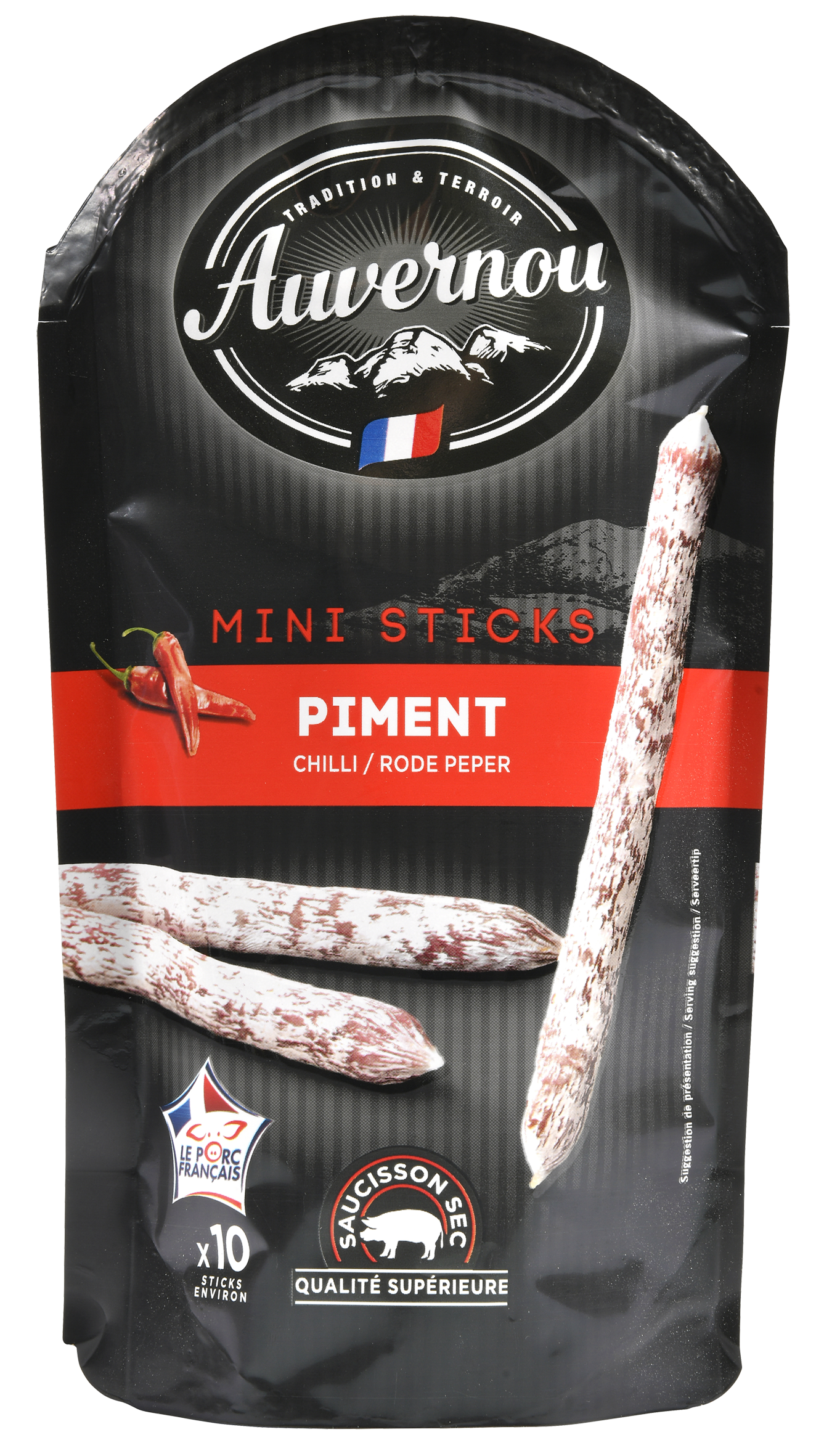 | Tilleggsinfo | Pakket i beskyttende atmosfære. Til 100g ferdigvare er anvendt: svinekjøtt 179g. Pakken inneholder 9-10 sticks. |
