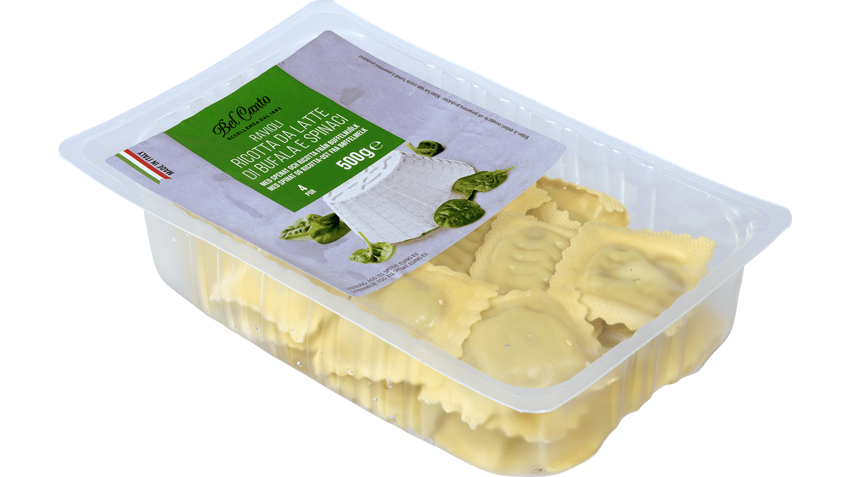 Fersk, italiensk eggpasta av høy kvalitet. Pastaen er fylt med smørstekt spinat og ricotta laget på italiensk bøffelmelk.