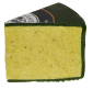 Cheddar med smak av hvitløk og urter i grønn voks laget på pasteurisert kumelk.