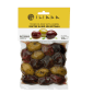 | Ingredienser | Oliven 85% (Kalamon, grønne, sorte), vineddik, salt, extra virgin olivenolje, urter 0,15% (oregano, sar, rosmarin), surhetsregulerende middel: melkesyre E270, sitronsyre E330. |