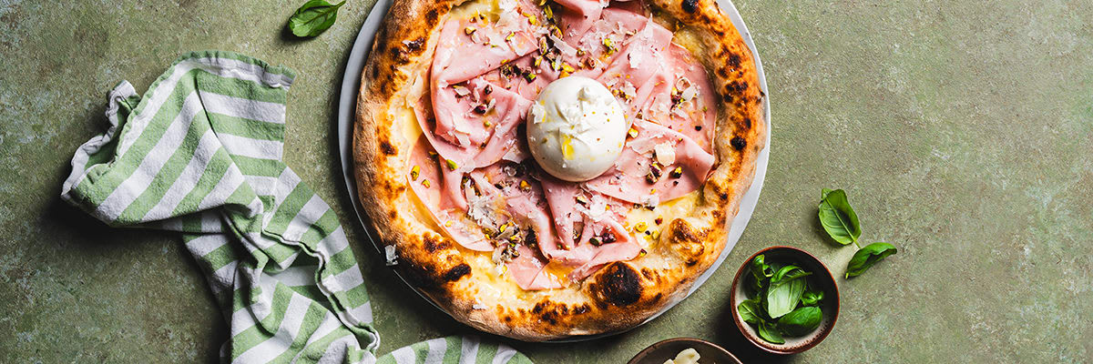 Her finner du våre nøye utvalgte og populære pizzaprodukter, fra ferdige, håndlagde pizzabunner til mel, pizzasaus, ost og annen topping.