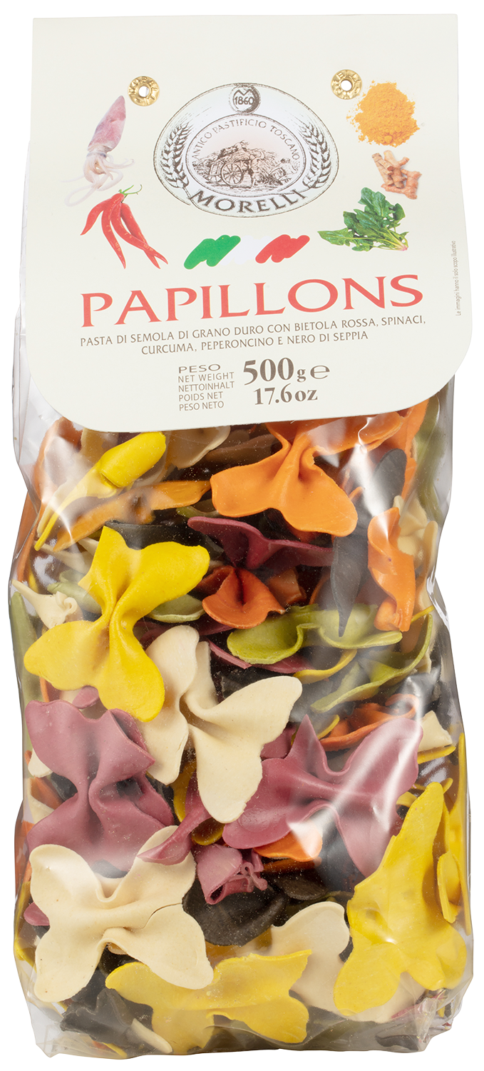 | Ingredienser | Durumhvete semolina, vann, chilipepper 2%, tørket rødbet 2%, gurkemeiepulver 2%, tørket spinat 2%, blekksprutblekk 1%. |