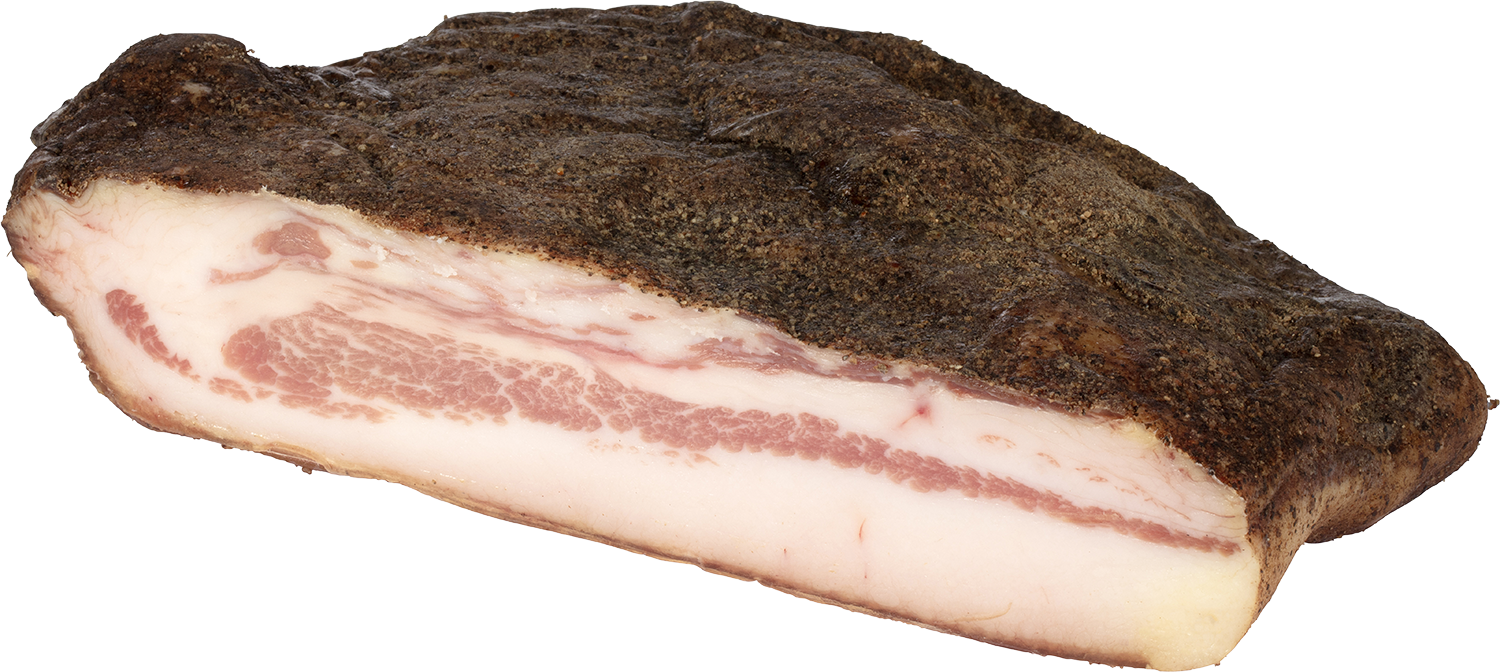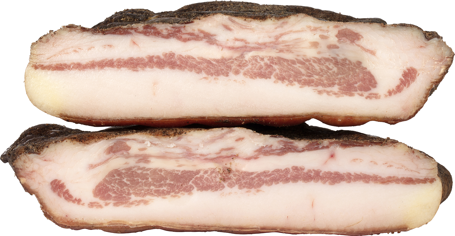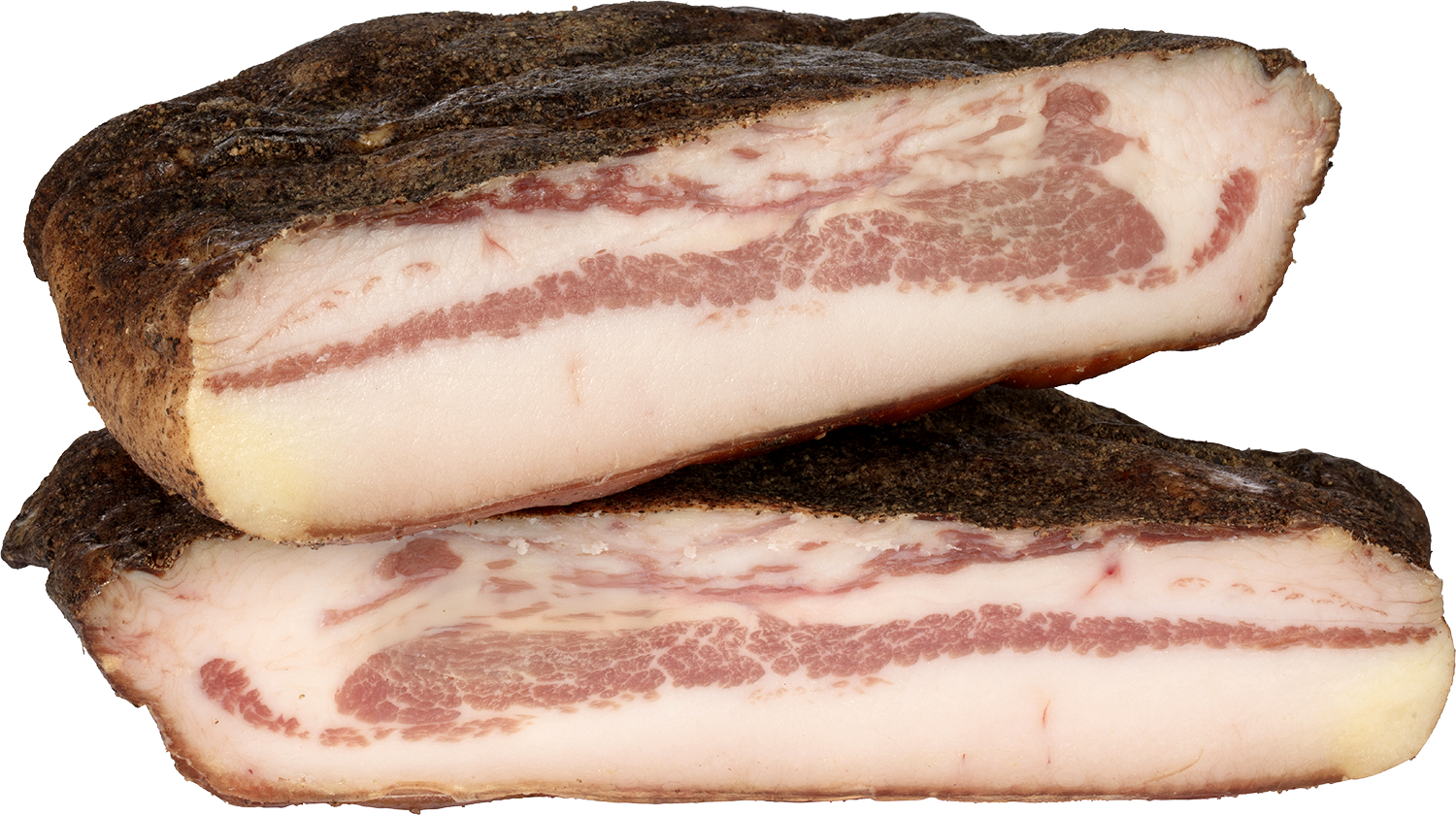 Guanciale stagionato lages i fra kinnet på grisen. I motsetning til bacon er dette kjøttet urøkt. Dette saltes og krydres med pepper og har en modningstid på tre uker.