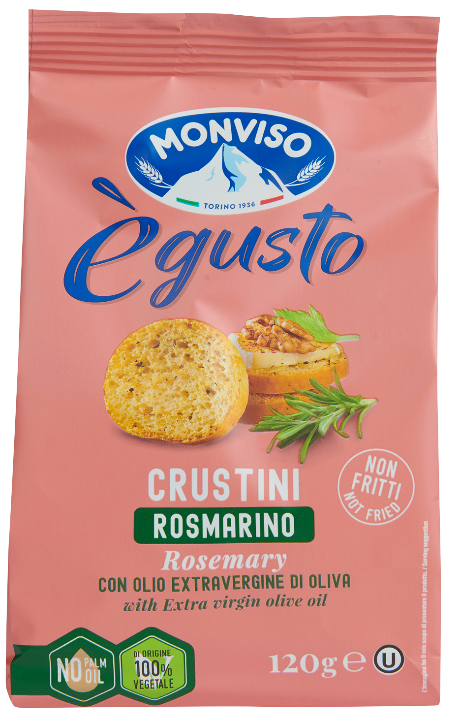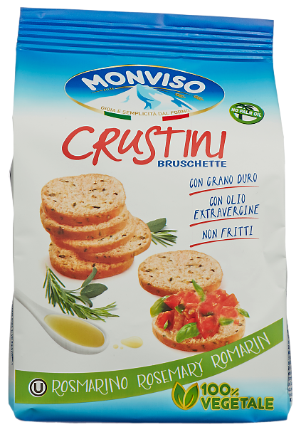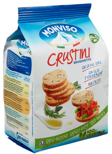 | Ingredienser | Hvetemel 58%, durumhvete semolina 38%, olivenolje 10%, solsikkeolje, havsalt, rosmarin 2%, gjær, extra virgin olivenolje 1%, maltekstrakt av bygg og mais, sukker, tørket timian, tørket salvie 0,1%, antioksidant: ekstrakter av rosmarin E392. |