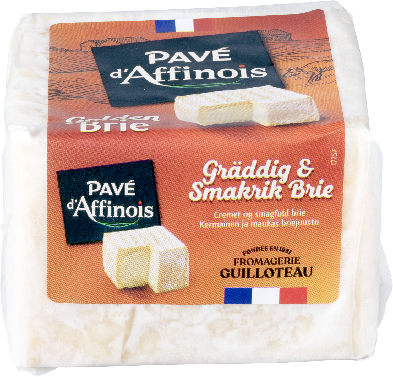Pavé d'Affinois Golden Brie er en fransk, kremet og myk hvitmuggost som smelter i munnen. Den skiller seg ut på ostefatet med sin karakteristiske firkantede form, som gir osten et elegant preg og gjør den enkel å skjære.