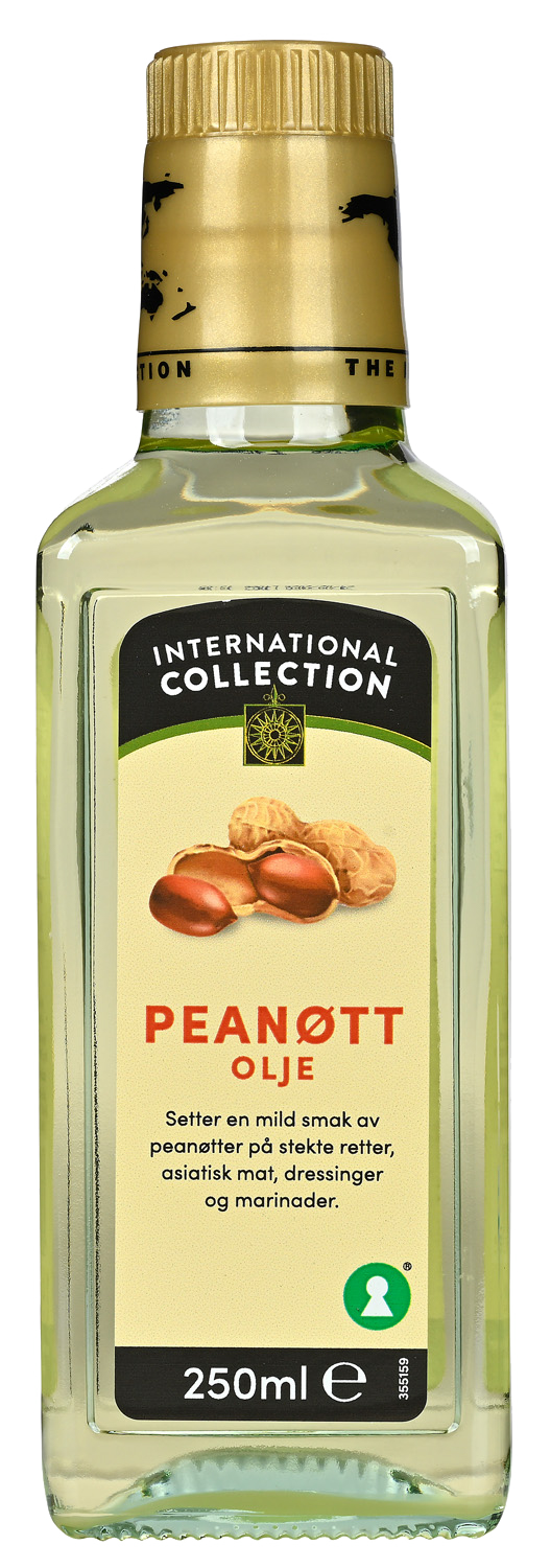 Peanøttoljen fra International Collection har en rund smak av peanøtter, og passer utmerket til stekte retter, spesielt i asiatisk og kontinental matlaging. Denne oljen tåler høye temperaturer.