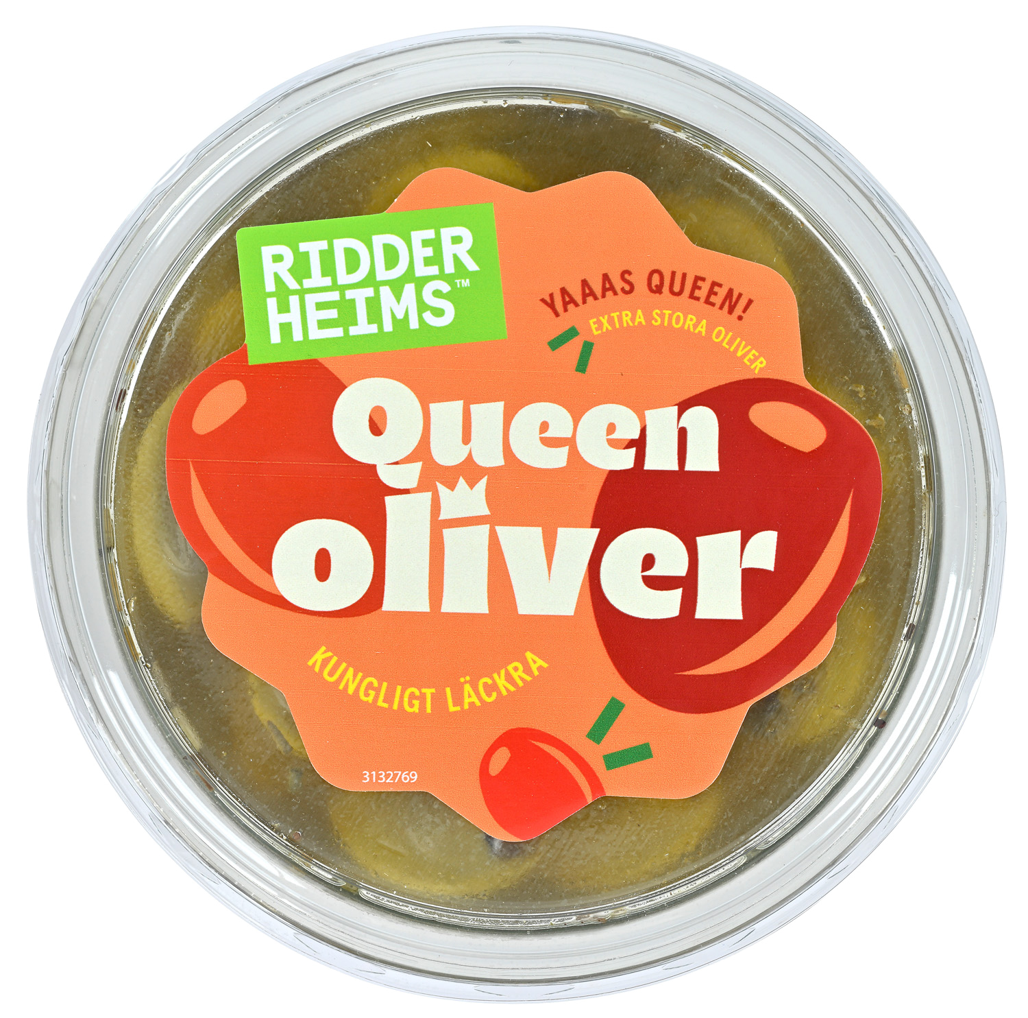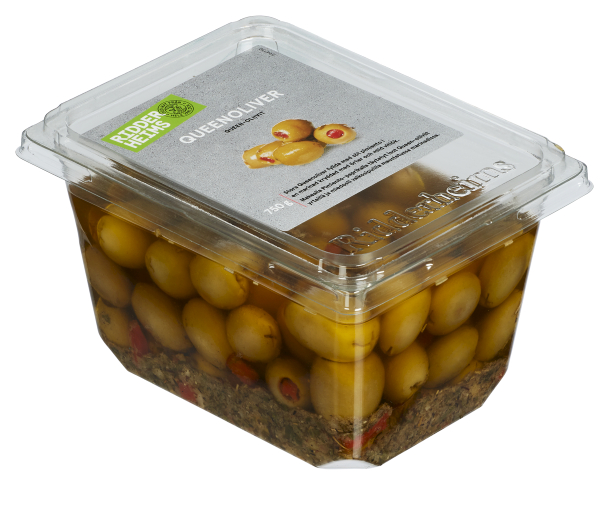 | Ingredienser | Oliven uten sten med paprikafyll 56 % (grønne oliven u/sten, vann, paprika, fortykningsmiddel: natriumalginat E401, guarkjernemel E412, salt), smaksforsterker: kalsiumklorid E509, salt, surhetsregulerende middel: sitronsyre E330, konserveringsmiddel: kaliumsorbat E202, rapsolje, olivenolje, hvitløk, sterkvin, sjalottløk, urtekrydder (persille, timian, oregano, rosmarin, basilikum, estragon, salvie, gressløk), salt, hvitvinseddik, krydder (sort pepper, hvit pepper, kajennepepper), løk, sort pepperekstrakt, antioksidant: askorbinsyre E300, konserveringsmiddel: sorbinsyre E200, natriumbenzoat E211. |
