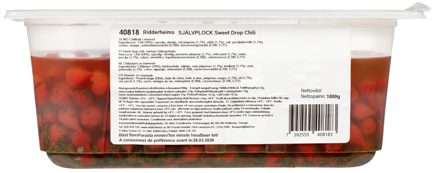 | Ingredienser | Chilipepper 58%, rapsolje, olivenolje, rød jalapeno chilipepper 1,7%, hvitløk 1,7%, salt, persille 1,1%, sukker, eddik, antioksidant: askorbinsyre E300, konserveringsmiddel: sorbinsyre E200, natriumbenzoat E211. |