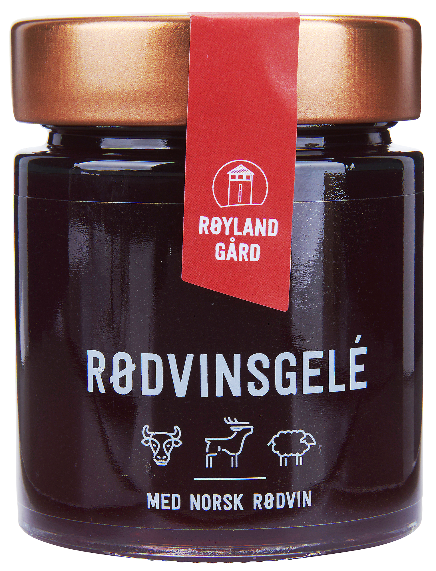 Rødvinsgeleen fra Røyland Gård er basert på rødvin produsert hos Ve gård i Sande i Vestfold. Røylands rødvinsgelé er en fruktig og rund gelé med nydelig smak av rødvin. Den er frisk og velbalansert med en behagelig ettersmak av frukt og bær. Rødvinsgeleen passer utmerket til kjøttretter, vilt og lam. Geleen er også ypperlig som smakstilsetning i sauser og gryter. Det unike med Røylands produkter er at de alle baseres utelukkende på norske råvarer. Produktene fra Røyland Gård produseres alle uten konserveringsmidler og rørsukkeret og krydderet som benyttes er økologisk.