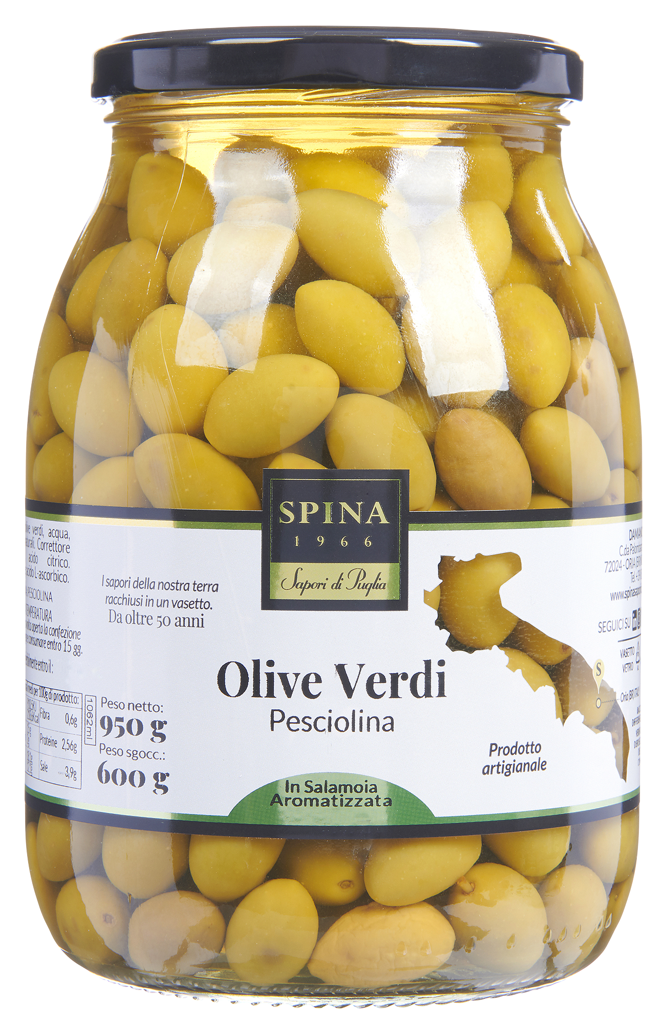 | Ingredienser | Grønne oliven 55%, vann, salt, naturlig aroma, surhetsregulerende middel: sitronsyre E330, antioksidant: askorbinsyre E300. |