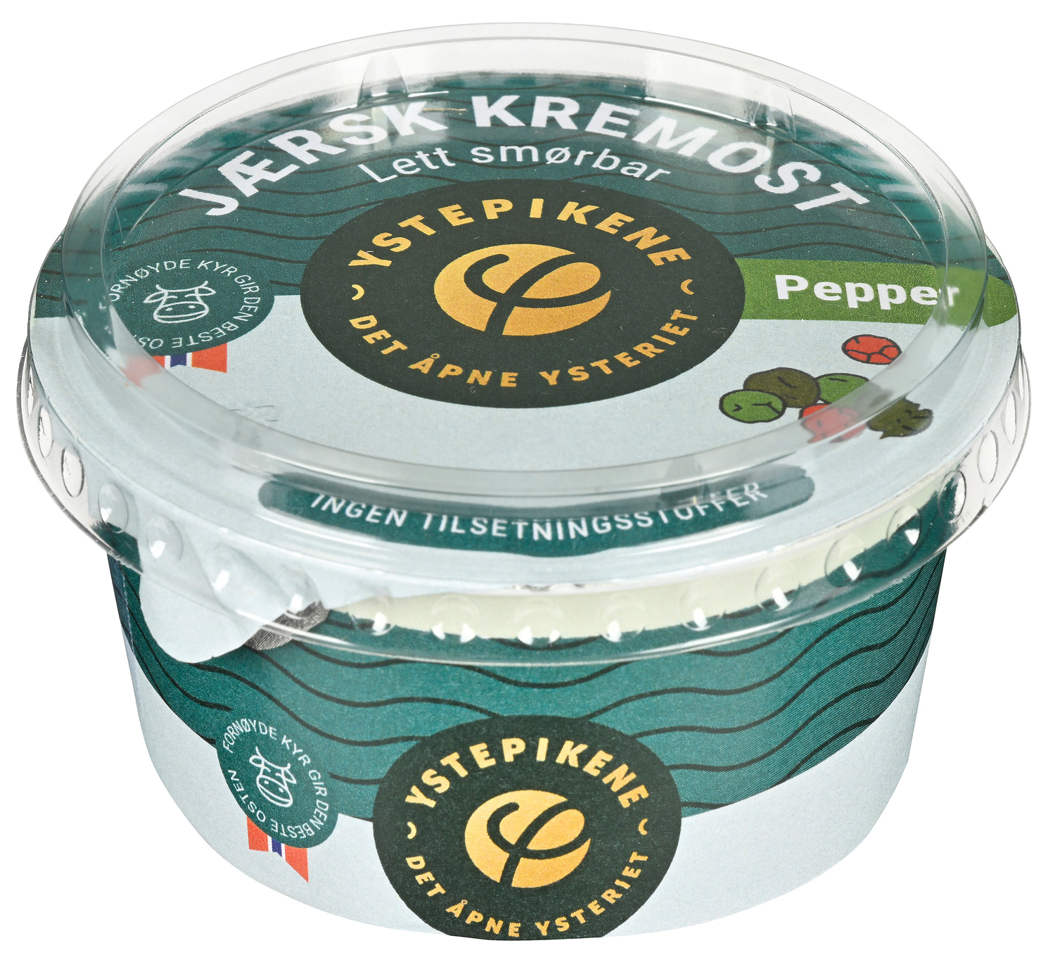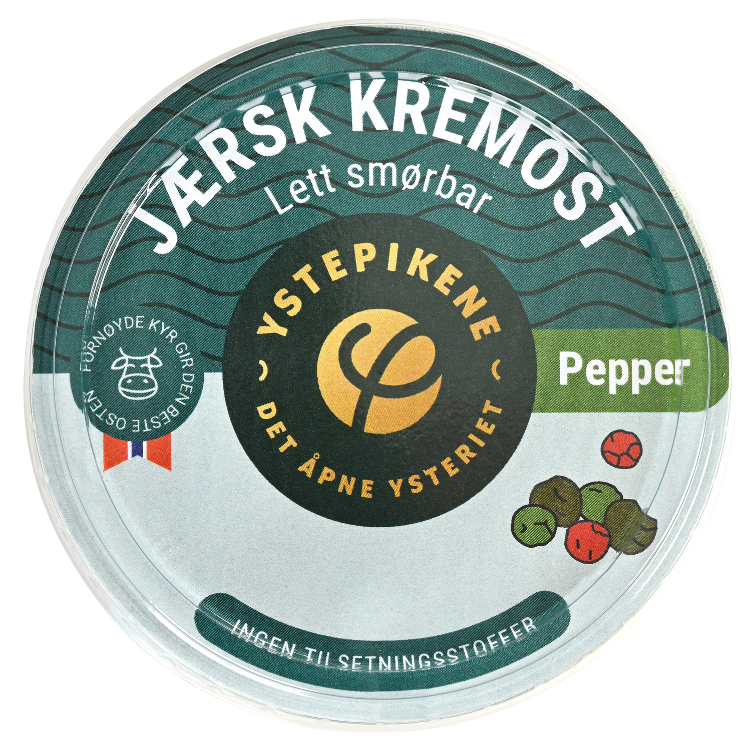 En mager, luftig og lett smørbar kremost med pepper ystet på pasteurisert melk fra egne kyr. Kommer i flere smaker.