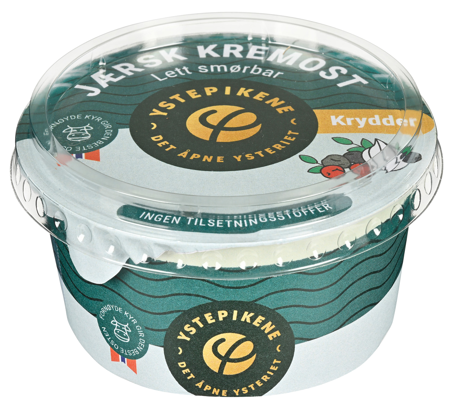 En mager, luftig og lett smørbar kremost med krydder ystet på pasteurisert melk fra egne kyr. Kommer i flere smaker.